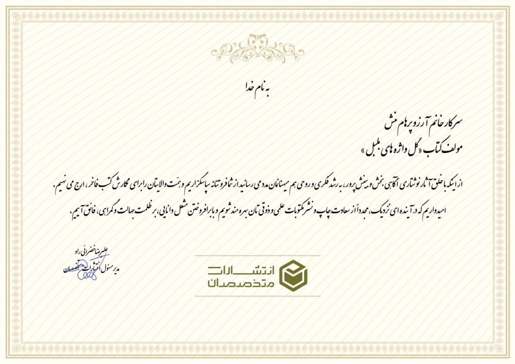 نام اثر او کتاب گل واژه های بلبل است که در اواخر قرن چهاردهم در انتشارات متخصصان به چاپ رسید .