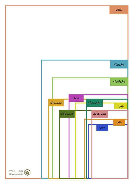 | رقعی و وزیری | ۲۳ | ۲۳ | ۲۵ | ۳۰ |